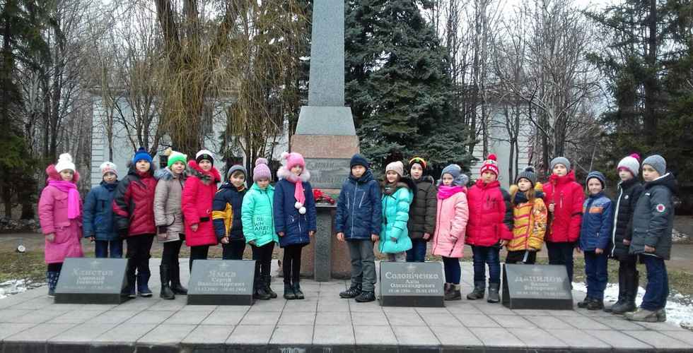 Виховна година під відкритим небом, присвячена Дню вшанування учасників бойових дій на території інших держав «Відлуння афганських гір», пройшла сьогодні для учнів 4-х класів. Класні керівники Литвиненко Н.Г., Морозова В.П. та учні зібралися біля пам’ятника воїнам-інтернаціоналістам Тернівського району.